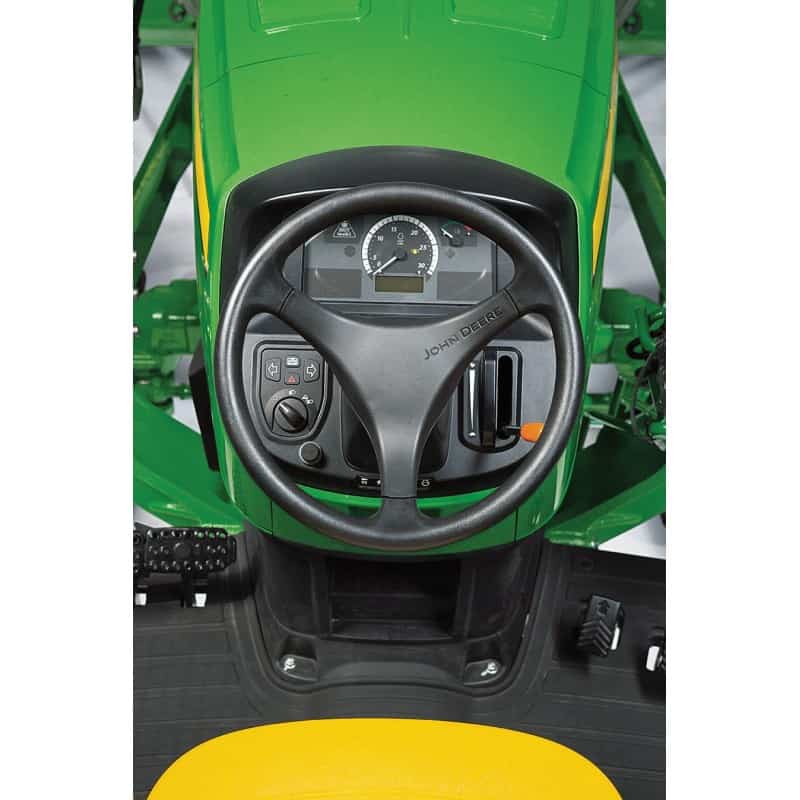 La transmission hydrostatique du 4049M permet un contrôle précis de la vitesse et de la direction, sans à-coups ni changements de vitesse manuels. Cette technologie facilite considérablement les manœuvres et les travaux nécessitant des ajustements fréquents de vitesse, comme le chargement de matériaux ou la tonte de précision. Les pédales ergonomiques avant/arrière offrent un contrôle intuitif qui réduit la fatigue de l’opérateur lors des longues sessions de travail.
